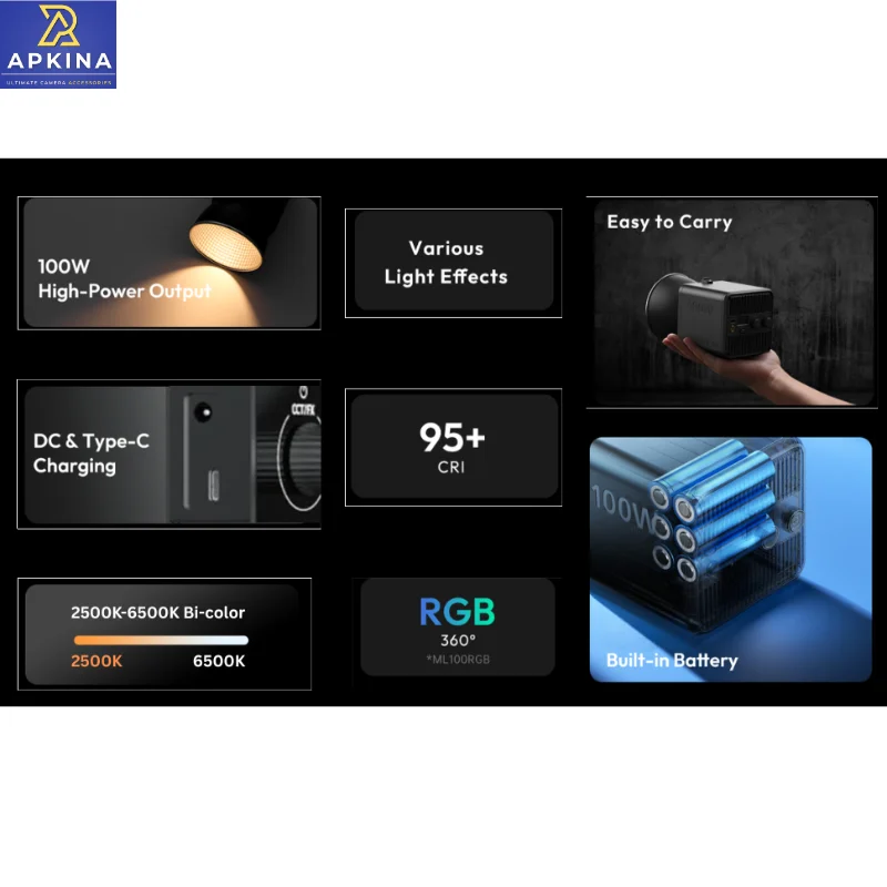 Designed for filmmakers and creators, the Apkina 100 Pro RGB offers a comprehensive lighting solution. Its compact design, coupled with high-output LED technology, ensures you get consistent and vibrant lighting for any project.