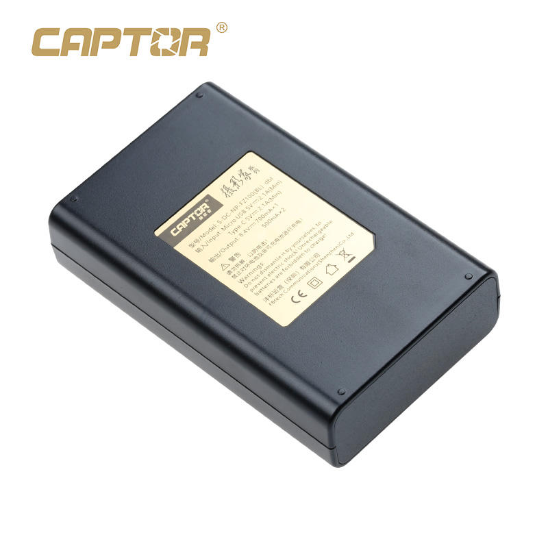 The Captor NP-FZ100 Dual Slot USB Charger is designed specifically for Sony NP-FZ100 batteries, making it compatible with popular Sony cameras like Sony A7M4, A7M3, A7C2, A7R3, A7S3, A7R4, A6600, A6700, and FX30. Its dual input system (5V-1.2A) ensures fast, efficient charging, while the cell display screen shows real-time charging status, giving photographers confidence and control.