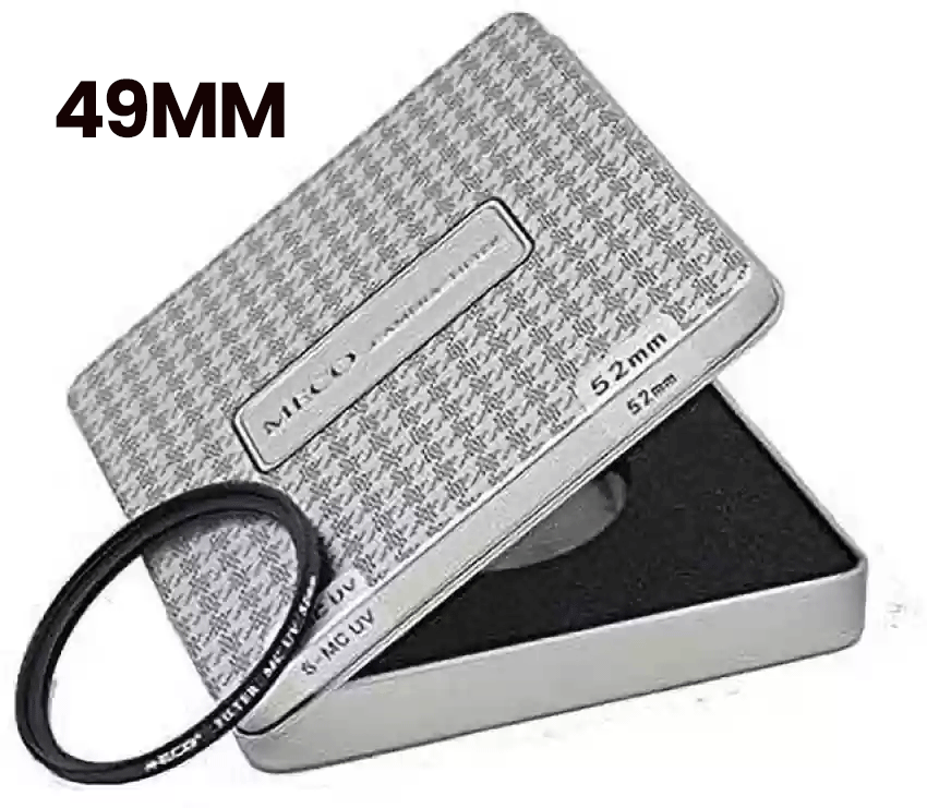 It comes in 49mm, 58mm, 67mm, 77mm, and 82mm sizes to fit most standard lenses.