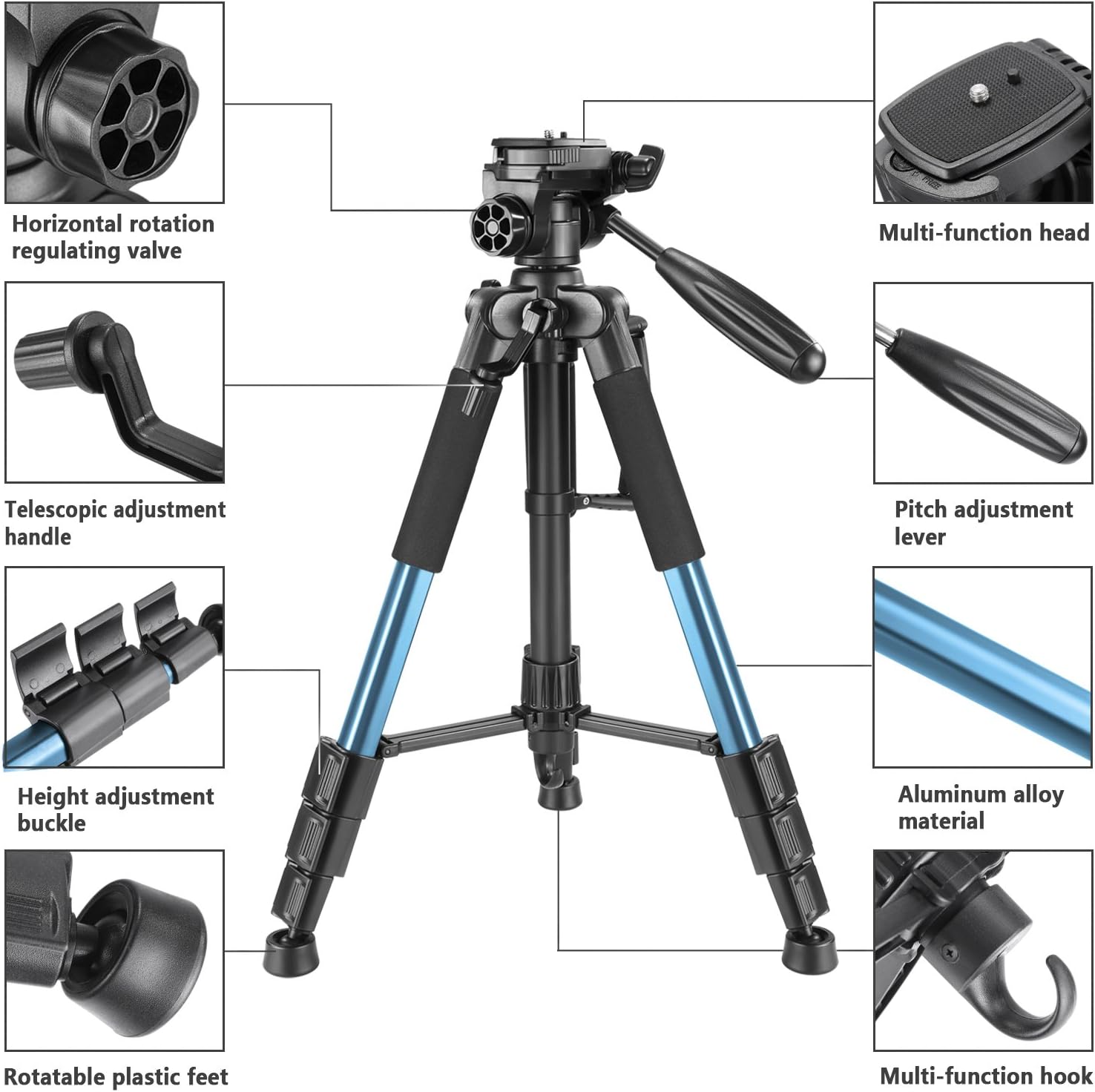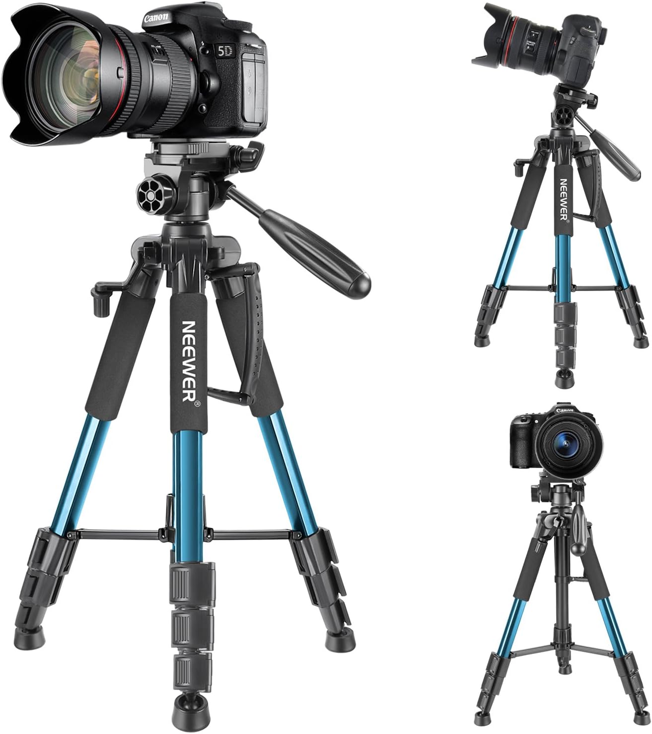 The Neewer SAB-234 tripod in Pakistan features a blue aluminium alloy body, combining strength with portability. It weighs light enough for travel but supports up to 4 kg of camera gear, ensuring steady shots every time.