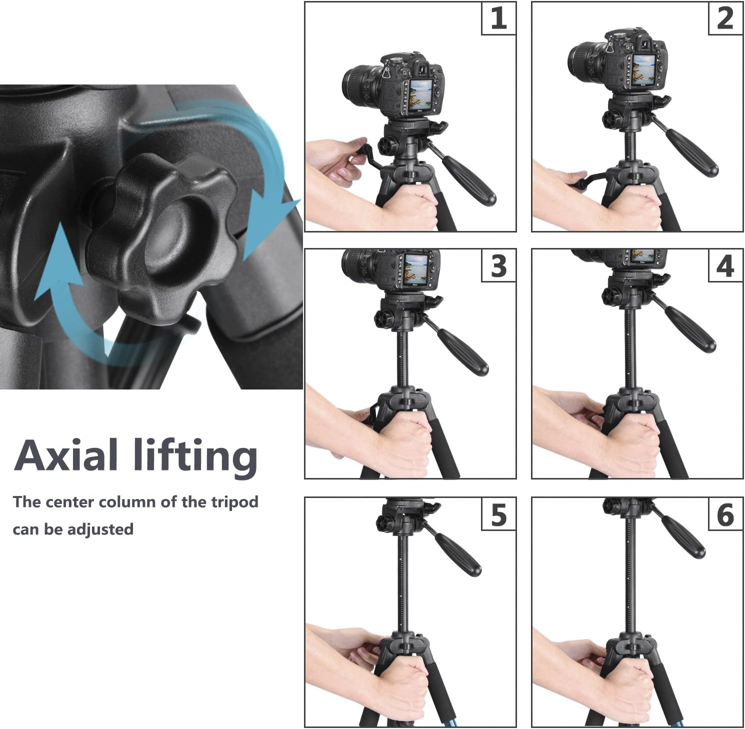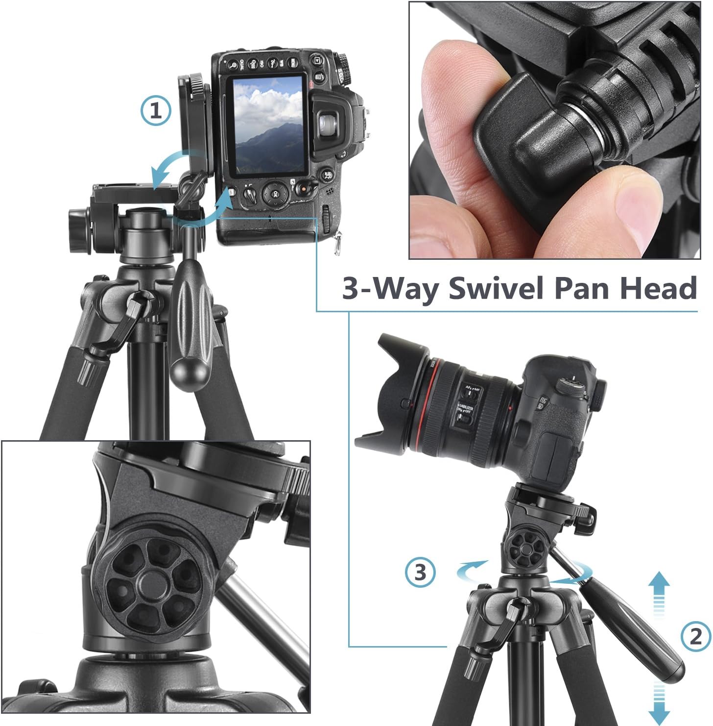 Thanks to its 3-way pan-and-tilt head, the Neewer SAB-234 tripod allows for 360° rotation and smooth vertical tilting. A quick-release plate is included for efficient camera swaps.