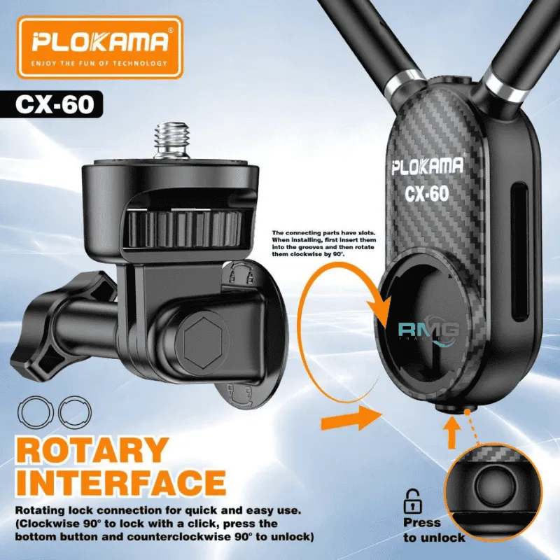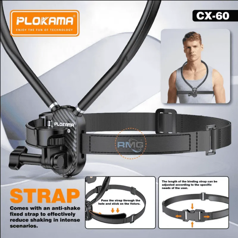 The Plokama CX-60 Phone Camera Neck Bracket is a smart, hands-free mounting solution designed for modern mobile creators, professionals, and everyday users. Built with a flexible silicone neck mount, a 360° rotary interface, and a standard 1/4″ adapter, it allows you to record, stream, or view content comfortably without holding your phone.