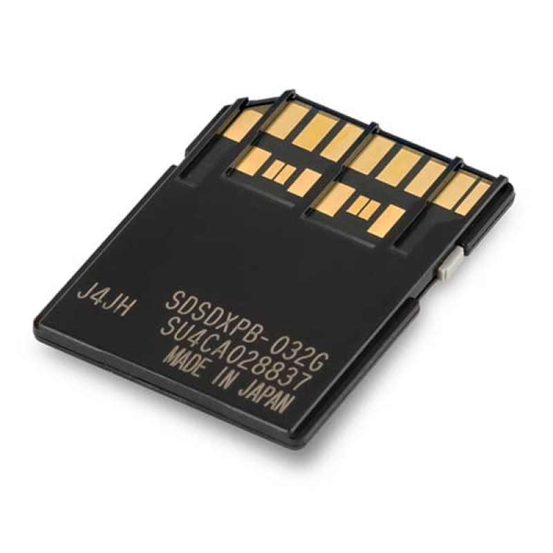 The card offers 32GB of storage, suitable for high-resolution photos and videos.