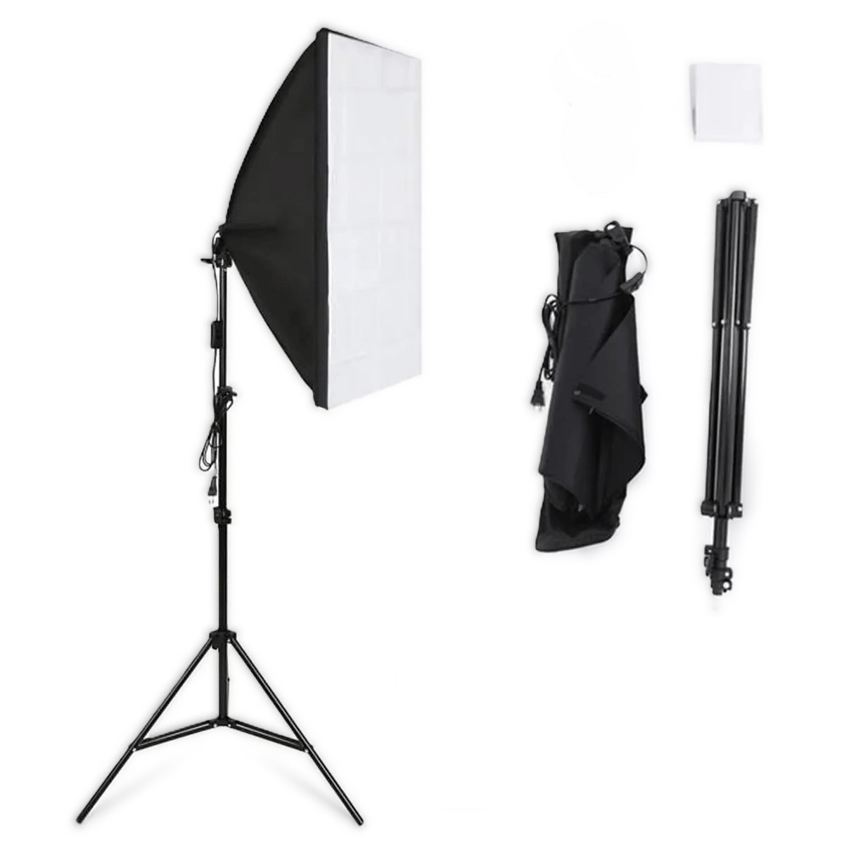 This Single Bulb Holder Softbox Light kit includes everything you need to create a soft, even lighting environment. The collapsible softbox, diffusion cover, and adjustable stand make it perfect for portrait sessions, interviews, product shoots, and online content creation.