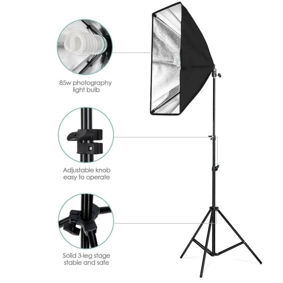 Designed with a strong and heat-resistant single bulb holder, this kit supports any standard E27 light bulb, including LED, CFL, and daylight bulbs.