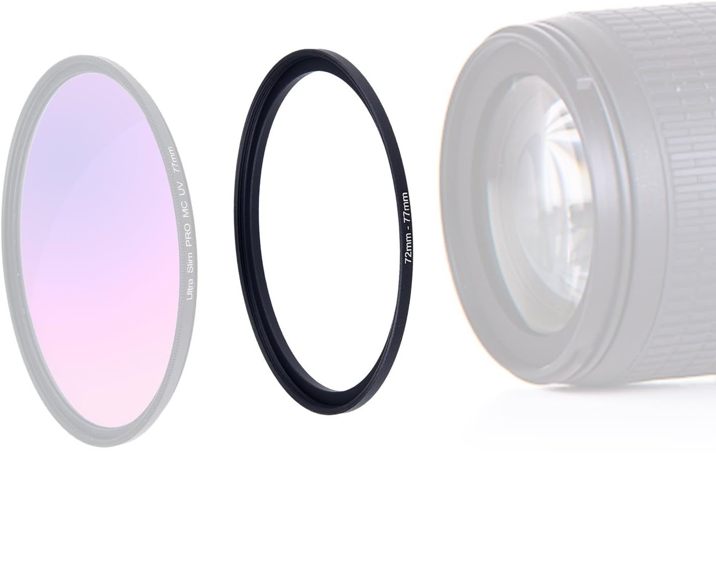 Match your lens size (e.g., 58mm) to your filter size (e.g., 67mm) and select the corresponding 58-67mm step-up ring.
