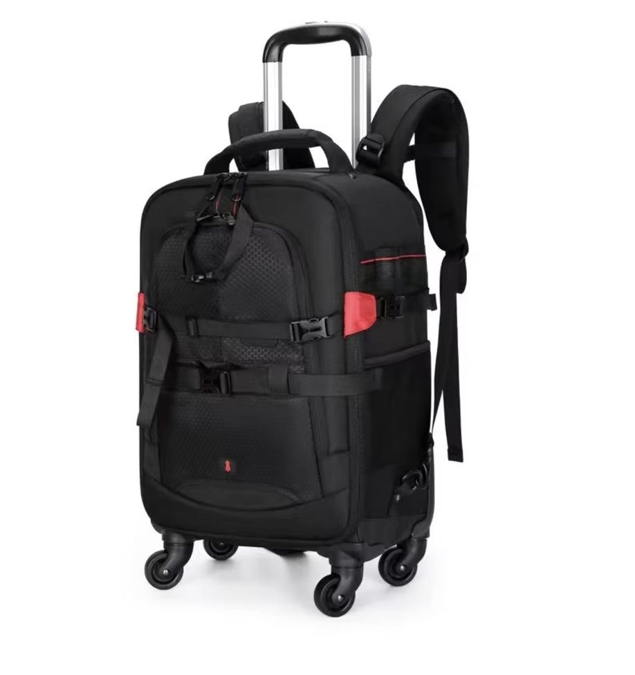 Designed for professional photographers and videographers, the large DSLR camera trolley bag combines durability, ample storage, and convenient mobility. This rolling camera bag is perfect for securely transporting your camera gear during travel or on location shoots, ensuring your equipment stays organized and protected.